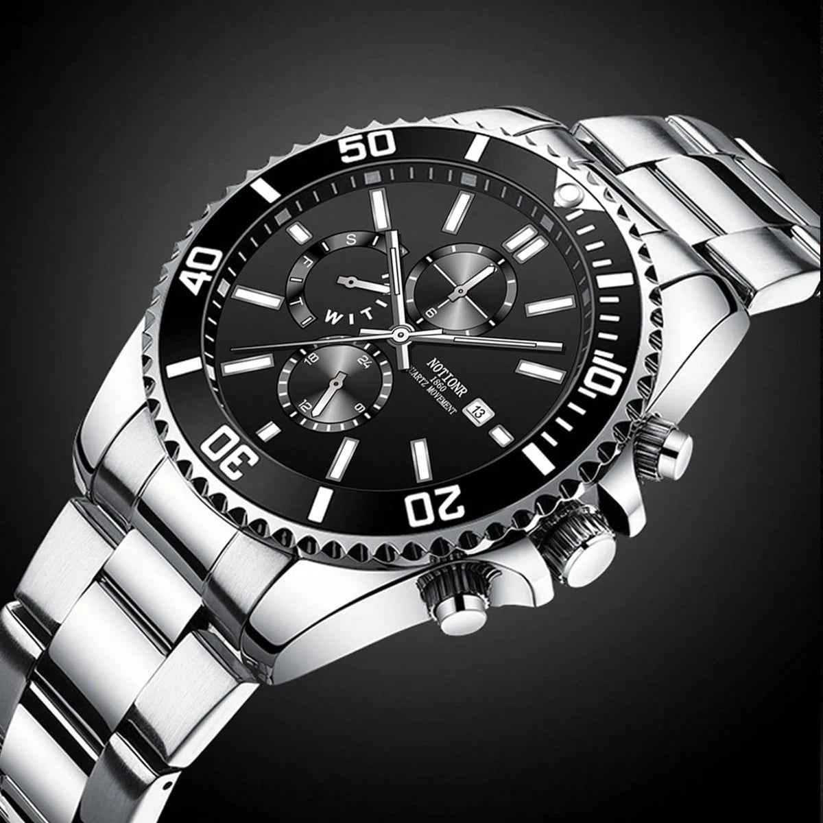 Luxury Men’s Business Watch – Silver Quartz Wristwatch with Luminous Dial